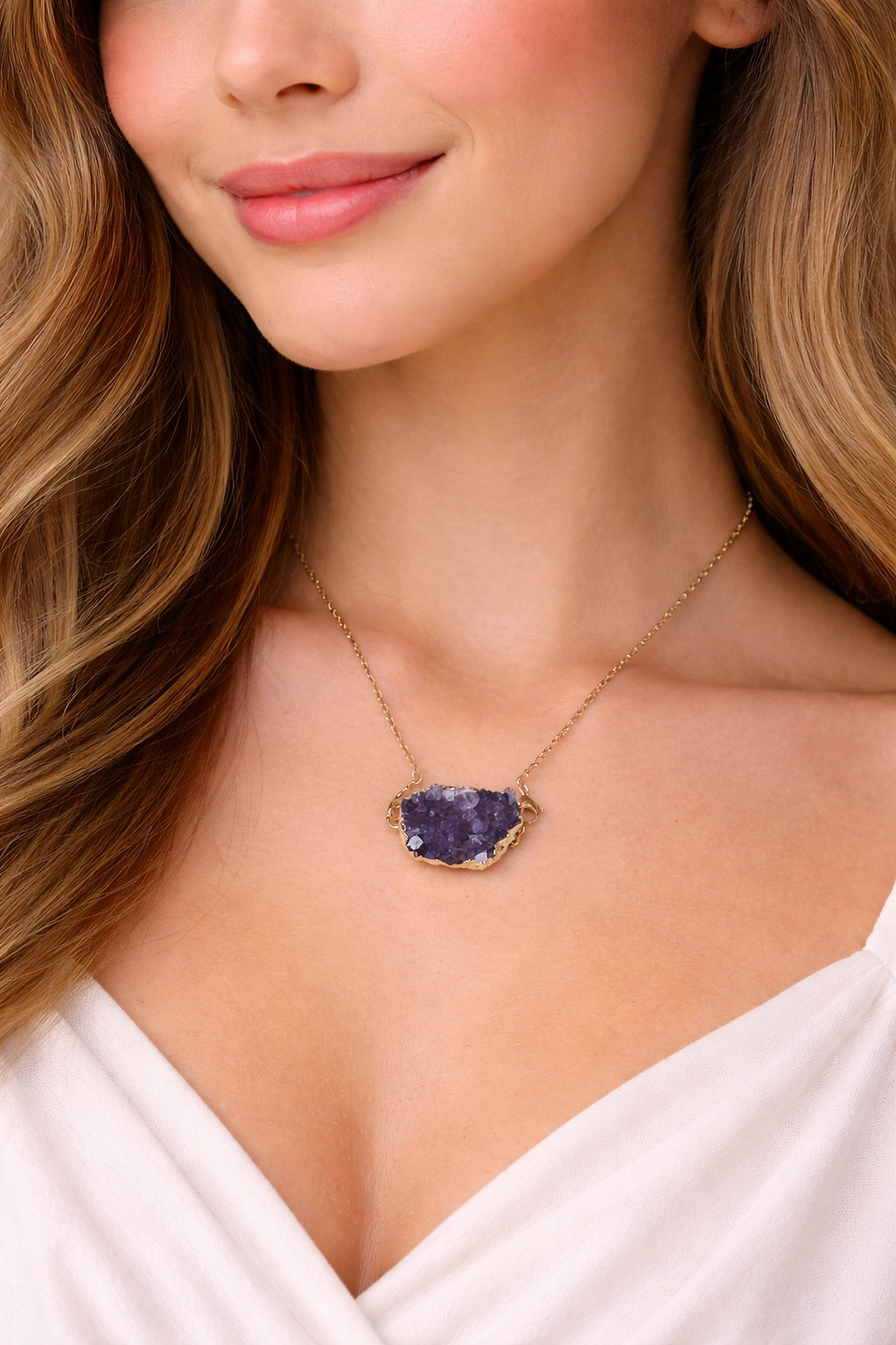 Colar Folheado - Drusa de Ametista